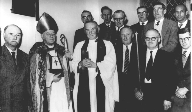 Maj W.G.Hole. B.A. (Churchwarden), The Rt Rev W.A.E.Westall. B.A., Rev G.O.C.Duxbury.M.A.(Vicar),
